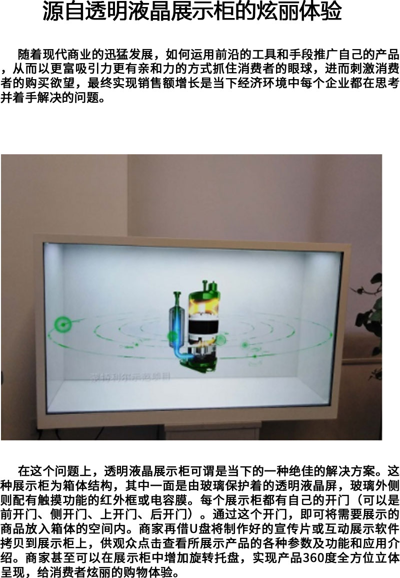 源自透明液晶展示柜的炫丽体验