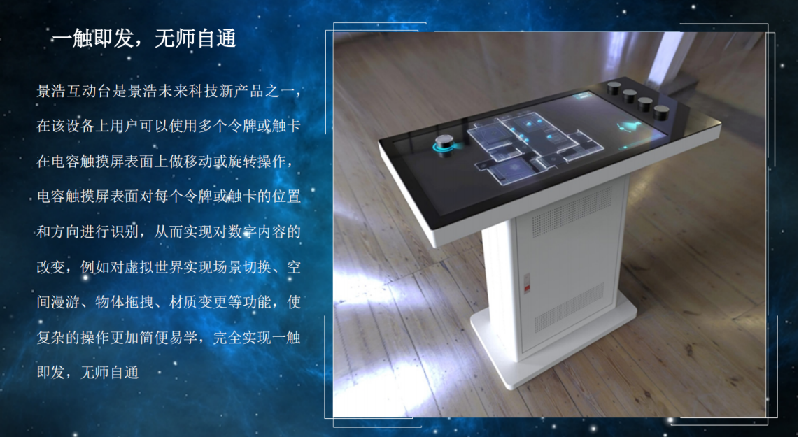 菜单新式互动产品Product center 互动滑轨屏 物体识别 智能触摸书法桌 光子透明屏 OLED透明屏 OLED壁纸屏 热门产品 →拼接透明屏 您的位置:首页 → 新式互动产品 → 物体识别 景浩物体识别桌 类别:物体识别 简介: 在线咨询 返回列表 产品说明